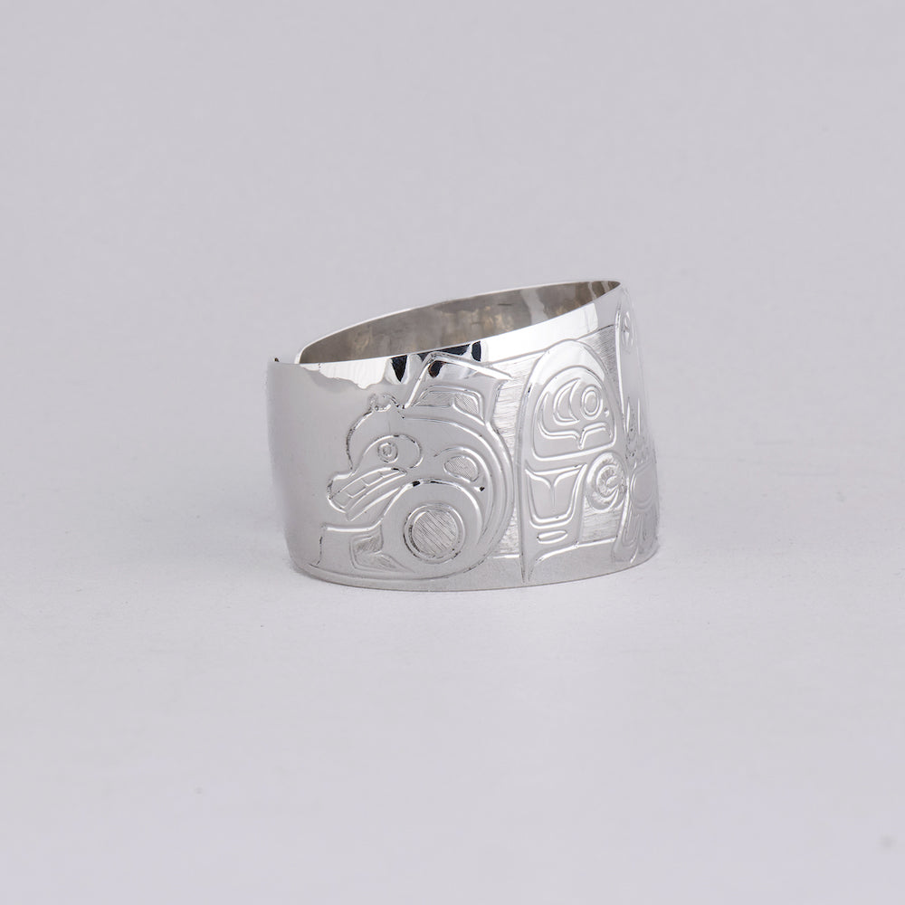 Indigenous artwork on the Pacific Northwest Coast often incorporates figures and animals that are related to crest symbols. Crests have been passed down through families and have varying meanings depending on the context and association with a nation, clan, or family. The figures depicted in contemporary Northwest Coast Indigenous artwork also have varying meanings but there are some common characteristics from a range of sources, including oral histories and artist descriptions.