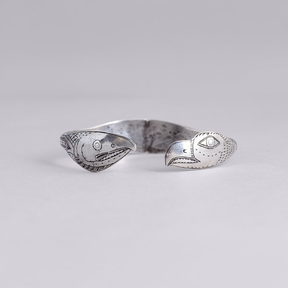 Indigenous artwork on the Pacific Northwest Coast often incorporates figures and animals that are related to crest symbols. Crests have been passed down through families and have varying meanings depending on the context and association with a nation, clan, or family. The figures depicted in contemporary Northwest Coast Indigenous artwork also have varying meanings but there are some common characteristics from a range of sources, including oral histories and artist descriptions. Salmon was a...