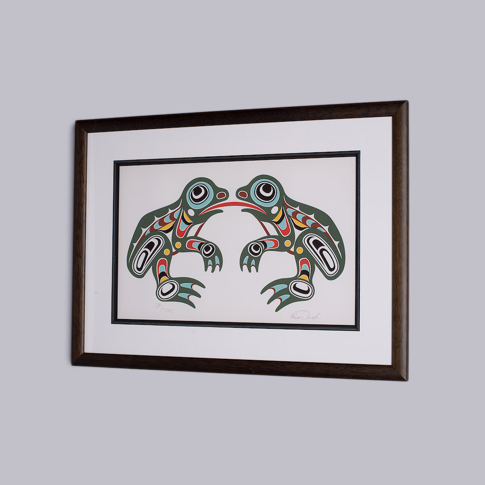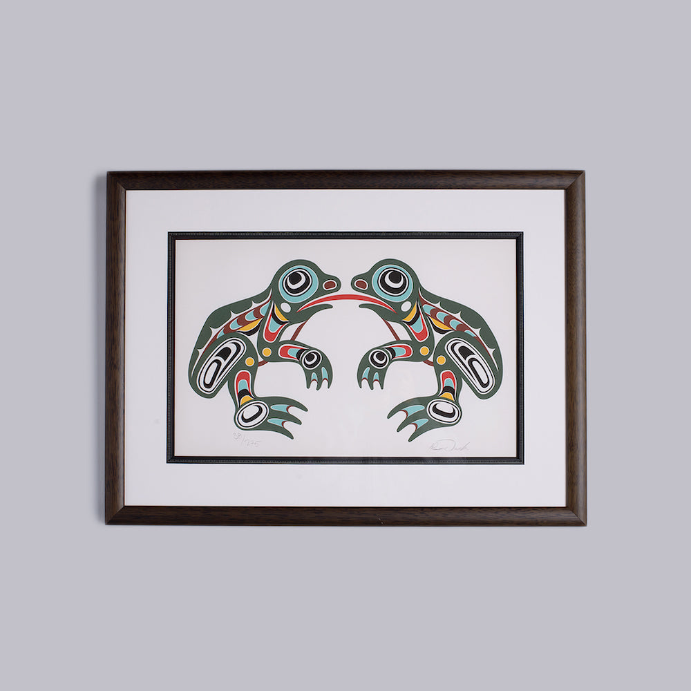 Ed /75 Available Framed for $1,200 CAD. Please contact the gallery directly. Indigenous artwork on the Pacific Northwest Coast often incorporates figures and animals that are related to crest symbols. Crests have been passed down through families and have varying meanings depending on the context and association with a nation, clan, or family. The figures depicted in contemporary Northwest Coast Indigenous artwork also have varying meanings but there are some common characteristics from a ran...
