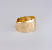 Humans appear in many oral traditions across the Northwest Coast, often as heroes and legends. These figures are depicted in many ways. Some figures might represent a chief or shaman while others an ancestor. Ancestors are incredibly important in Northwest Coast culture; thus, you will often see human portraits in the artwork depicting an ancestor figure. Free standing Human figures can range in size from small amulets to large scale poles several feet high. As amulets they are often a guardian symbol whereas the larger human figures can represent a welcoming figure. Human-like personifications of sun and wind are common in Northwest Coast artwork as well.