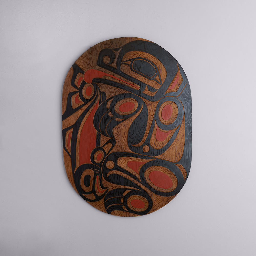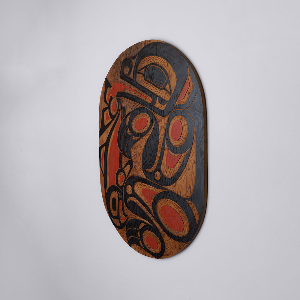 *Currently available to order only* Edition /12 Indigenous artwork on the Pacific Northwest Coast often incorporates figures and animals that are related to crest symbols. Crests have been passed down through families and have varying meanings depending on the context and association with a nation, clan, or family. The figures depicted in contemporary Northwest Coast Indigenous artwork also have varying meanings but there are some common characteristics from a range of sources, including oral...