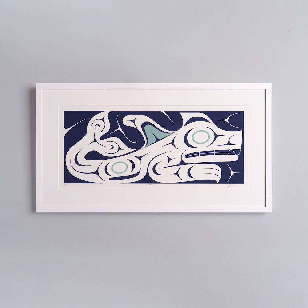 Edition /100 Available Framed for $800 CAD. Please contact the gallery directly. Indigenous artwork on the Pacific Northwest Coast often incorporates figures and animals that are related to crest symbols. Crests have been passed down through families and have varying meanings depending on the context and association with a nation, clan, or family. The figures depicted in contemporary Northwest Coast Indigenous artwork also have varying meanings but there are some common characteristics from a...