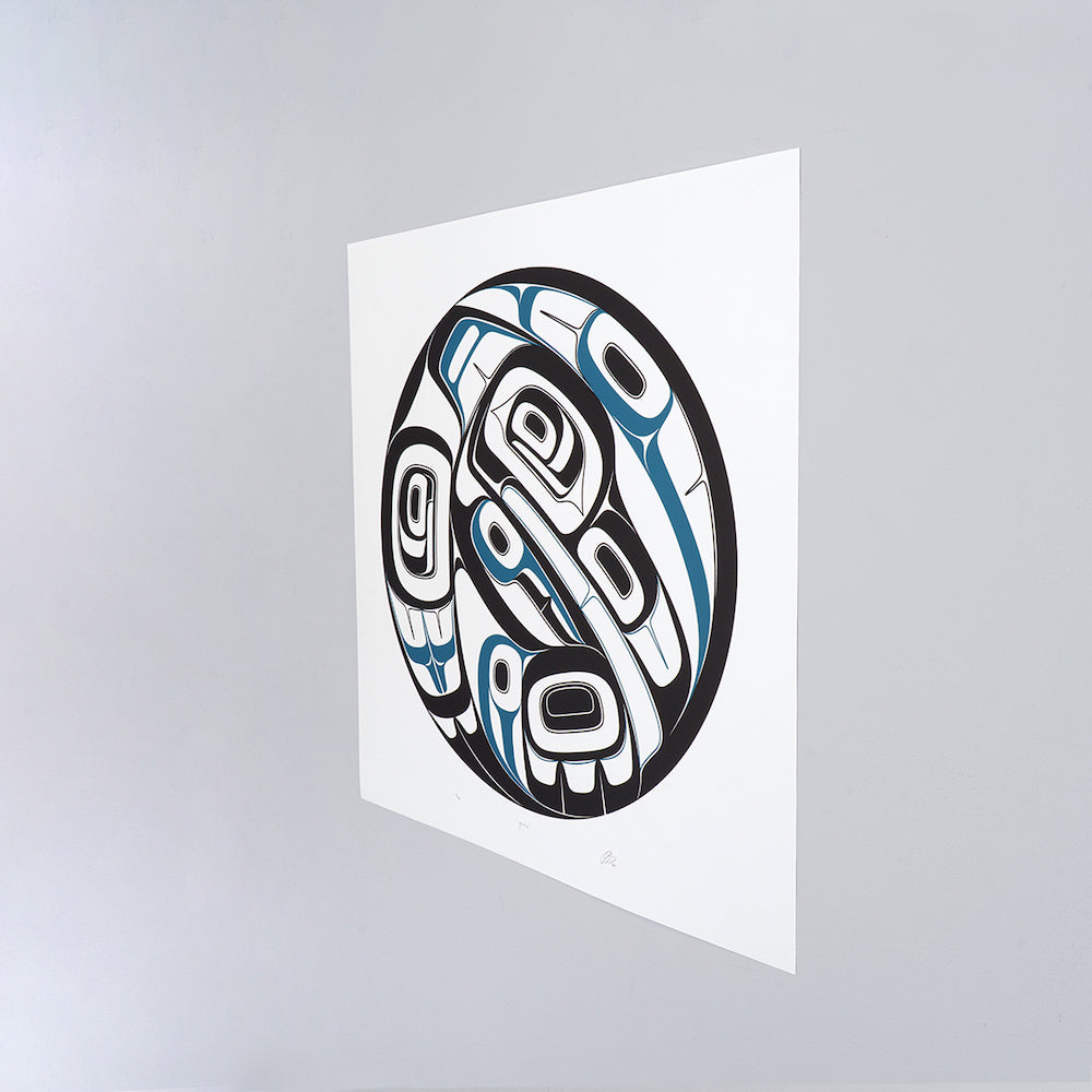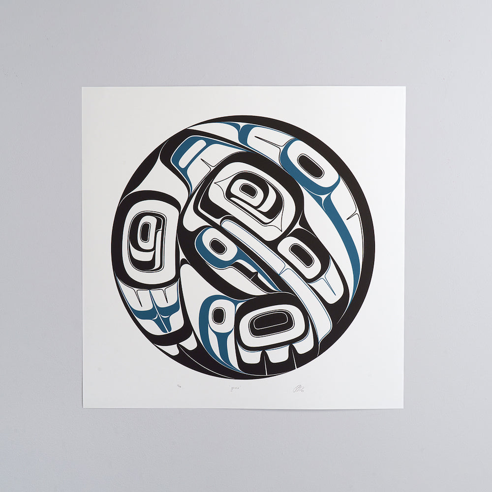 Ed /75 Available Framed for $1,200 CAD. Please contact the gallery directly. Indigenous artwork on the Pacific Northwest Coast often incorporates figures and animals that are related to crest symbols. Crests have been passed down through families and have varying meanings depending on the context and association with a nation, clan, or family. The figures depicted in contemporary Northwest Coast Indigenous artwork also have varying meanings but there are some common characteristics from a ran...