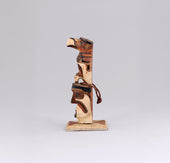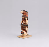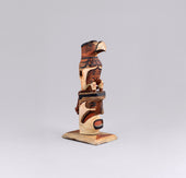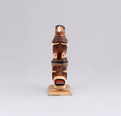 Pole says "Alert Bay 1959" on the backside and "Alert Bay 1958" on the bottom of the base. This piece was likely collected in Alert Bay, but is distinctly Salish in style.
