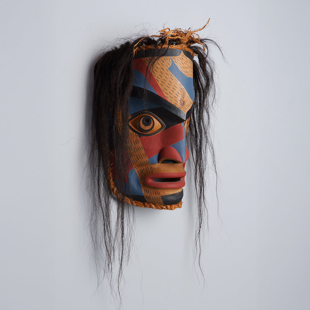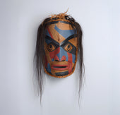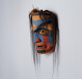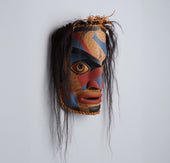 Humans appear in many oral traditions across the Northwest Coast, often as heroes and legends. These figures are depicted in many ways. Some figures might represent a chief or shaman while others an ancestor. Ancestors are incredibly important in Northwest Coast culture; thus, you will often see human portraits in the artwork depicting an ancestor figure. Free standing Human figures can range in size from small amulets to large scale poles several feet high. As amulets they are often a guardian symbol whereas the larger human figures can represent a welcoming figure. Human-like personifications of sun and wind are common in Northwest Coast artwork as well.
