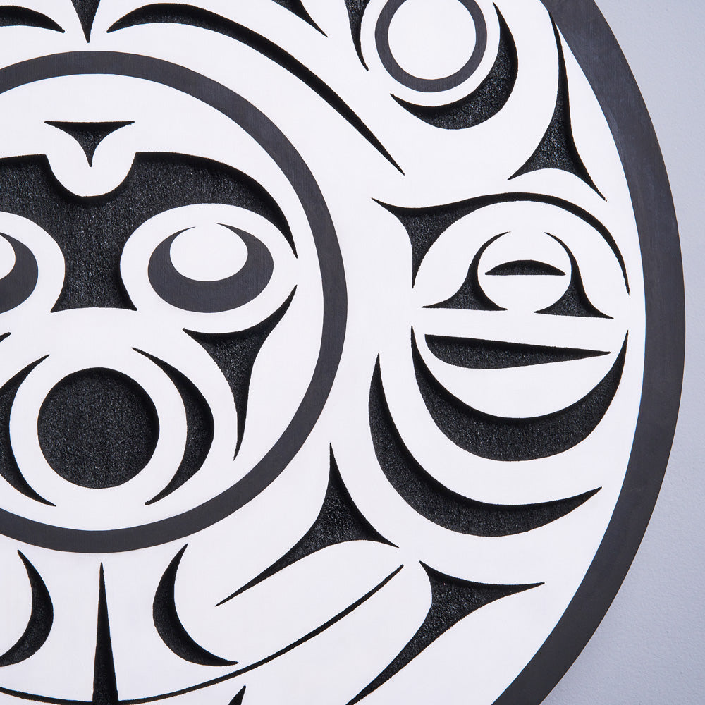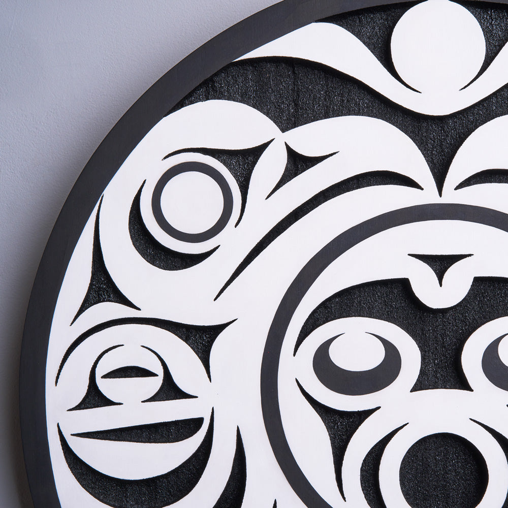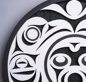 Indigenous artwork on the Pacific Northwest Coast often incorporates figures and animals that are related to crest symbols. Crests have been passed down through families and have varying meanings depending on the context and association with a nation, clan, or family. The figures depicted in contemporary Northwest Coast Indigenous artwork also have varying meanings but there are some common characteristics from a range of sources, including oral histories and artist descriptions.