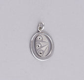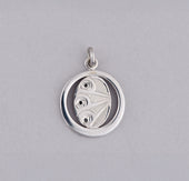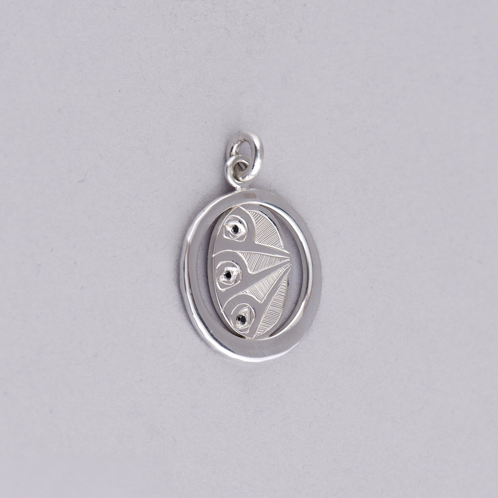 Hummingbird is a popular figure in Northwest Coast artwork, especially in jewelry. Generally, Hummingbird has associations with joy, beauty, and good luck. A legend from the Kwakwaka'wakw says that Dzunuk'wa (guardian of the mountains and Wild Woman of the Woods) loved this little bird so much that she let him nest in her hair. In return, the Hummingbird looked like jewelry pinned in her hair. Of all the birds, Hummingbird is the most talented flyer as it can hover in one place, fly sideways, backwards, and forwards. It is agile and adaptable, and some say can teach us how to move forward. Hummingbird is usually depicted with a small round head and a long beak with a sharp point. Flowers are often included in a design with Hummingbird.