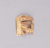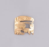 Raven is one of the most recognized figures in Northwest Coast art and oral tradition. Viewed oftentimes as a transformer and a trickster, Raven is the hero of many adventures such as the release of light into the world and the discovery of mankind. As a trickster figure, Raven can be celebrated for his cleverness, wit, and mischievous nature. In some oral traditions, Raven possesses the ability to shape-shift and is often depicted with a sense of humor and playfulness. Raven is identified by a thick, straight beak and the lack of plumage or horns on the head. Oftentimes, Raven will be depicted with a ball of light in his beak.