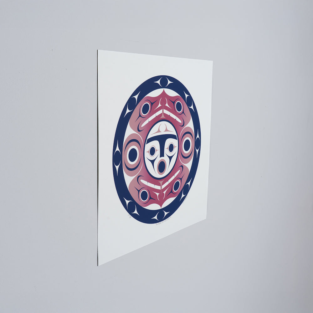 This limited edition print depicts the iconic double headed serpent. Serpents have been considered as high esteemed art symbols in many of the Pacific Northwest coast art traditions.